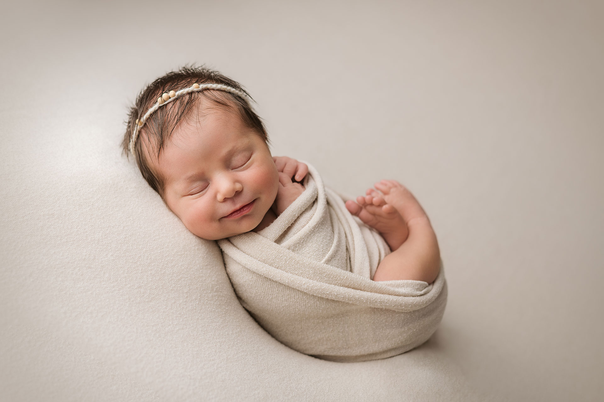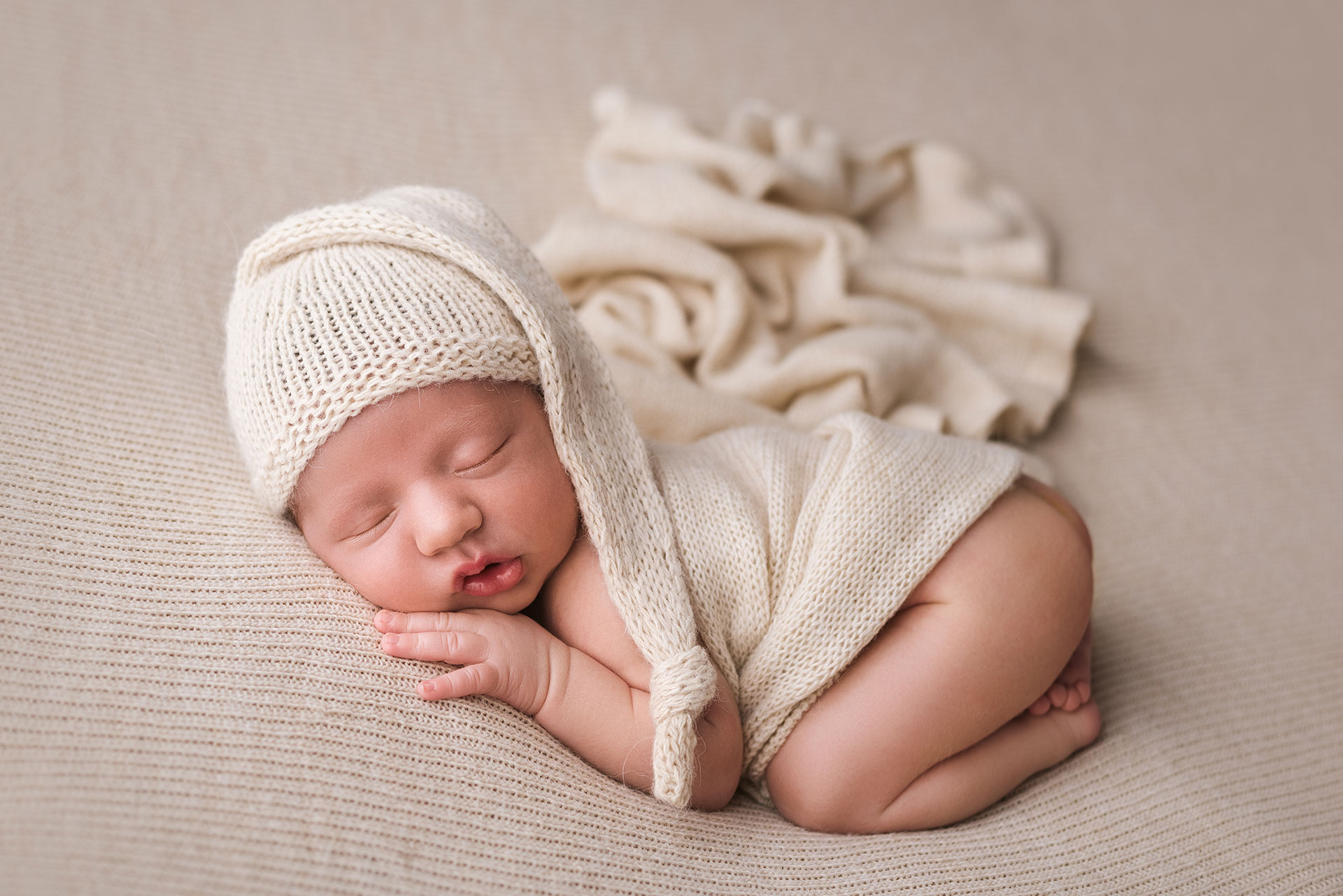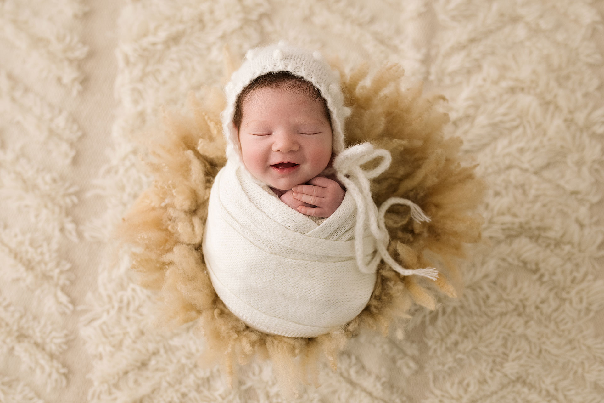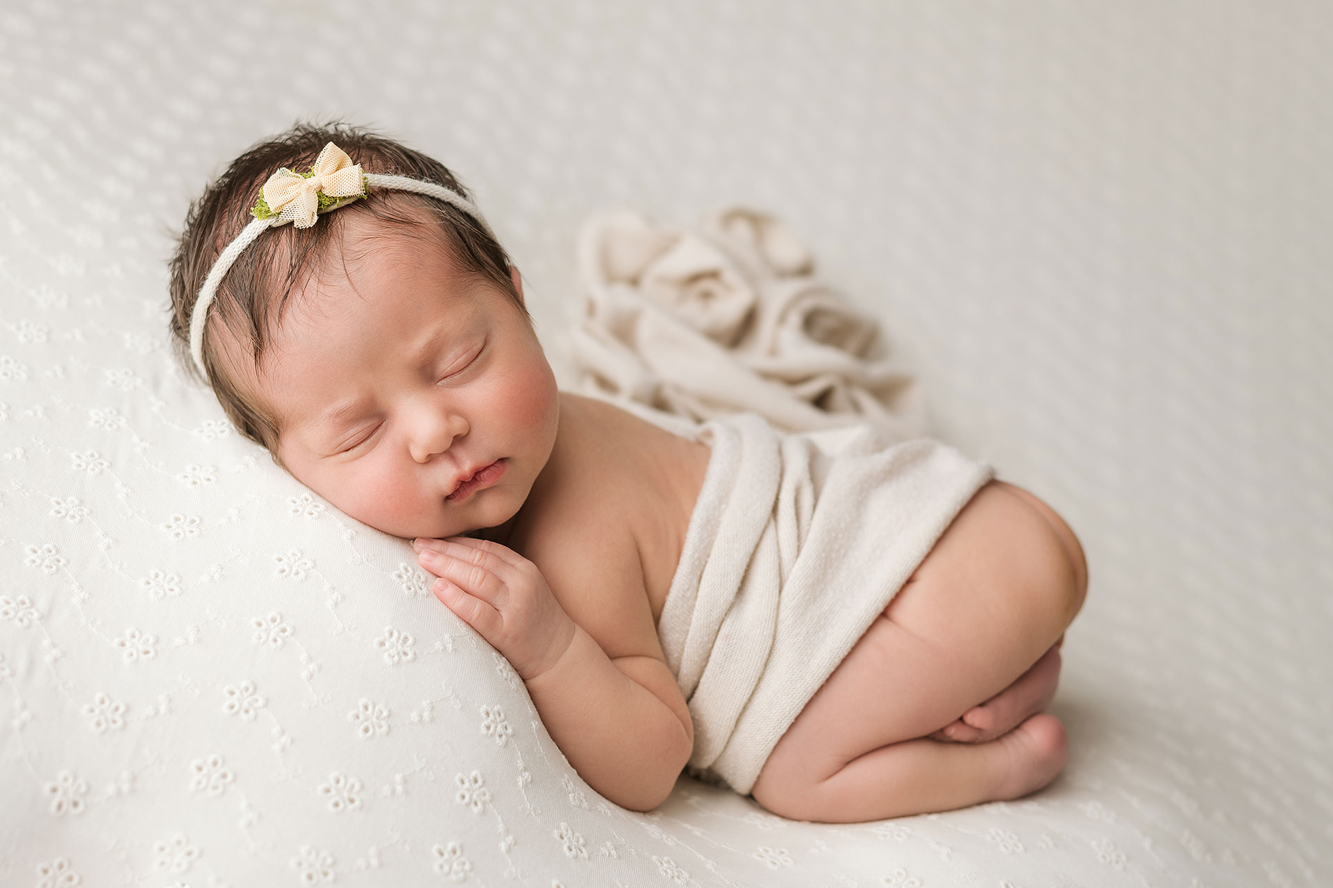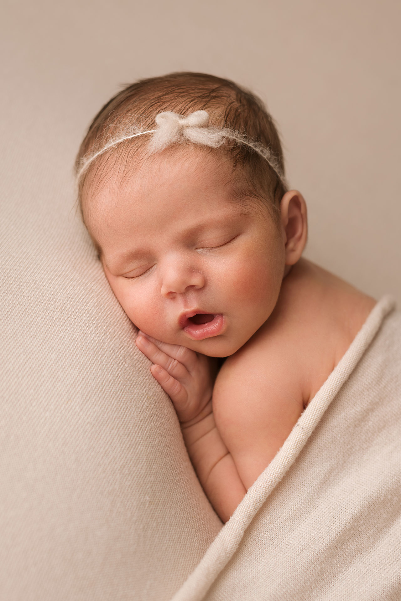La sessione newborn si effettua tra i 5 e i 15 giorni di vita, e proprio perché è necessario farlo in questi tempi il servizio va prenotato in gravidanza, fissando la data del servizio in base alla data presunta del parto.