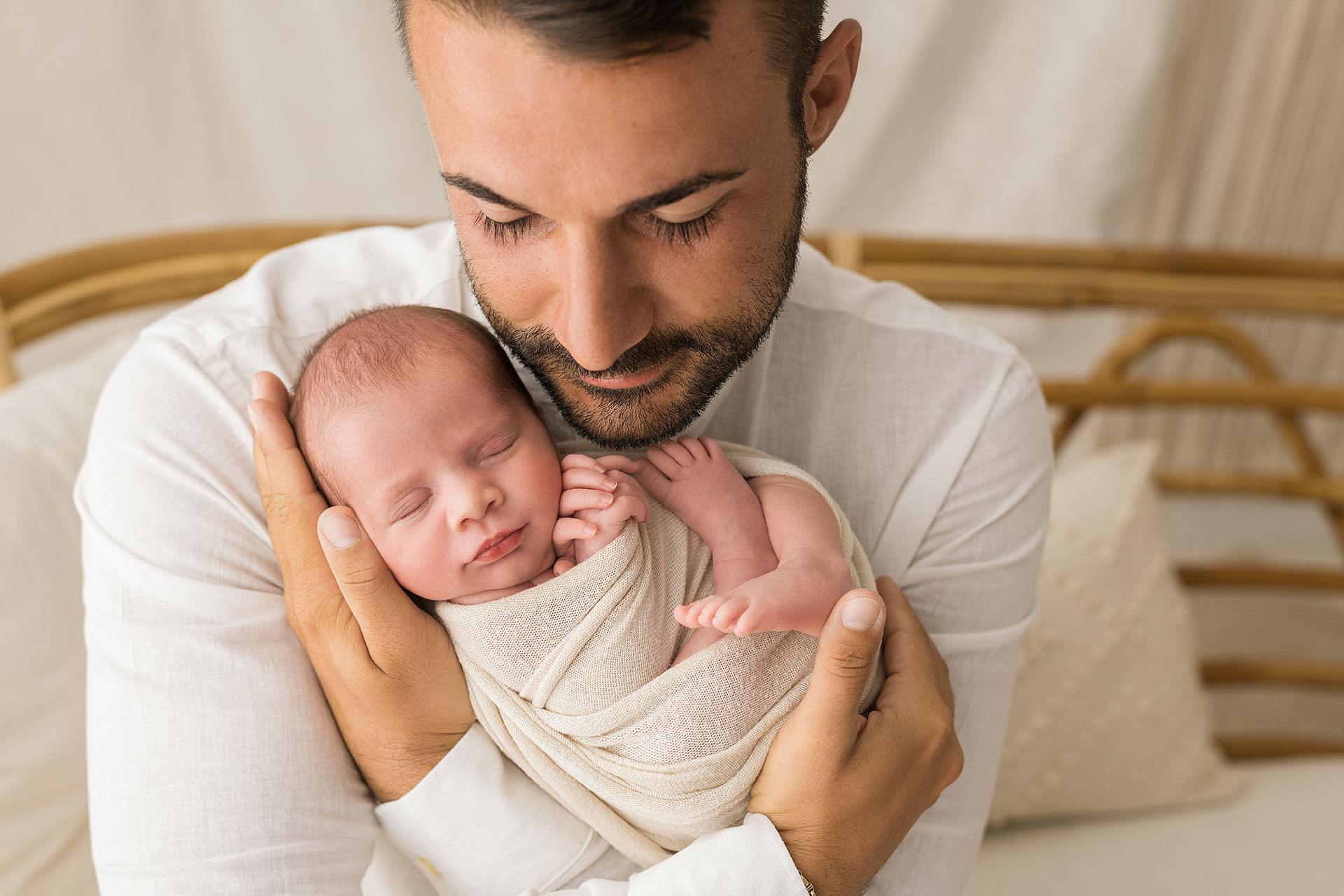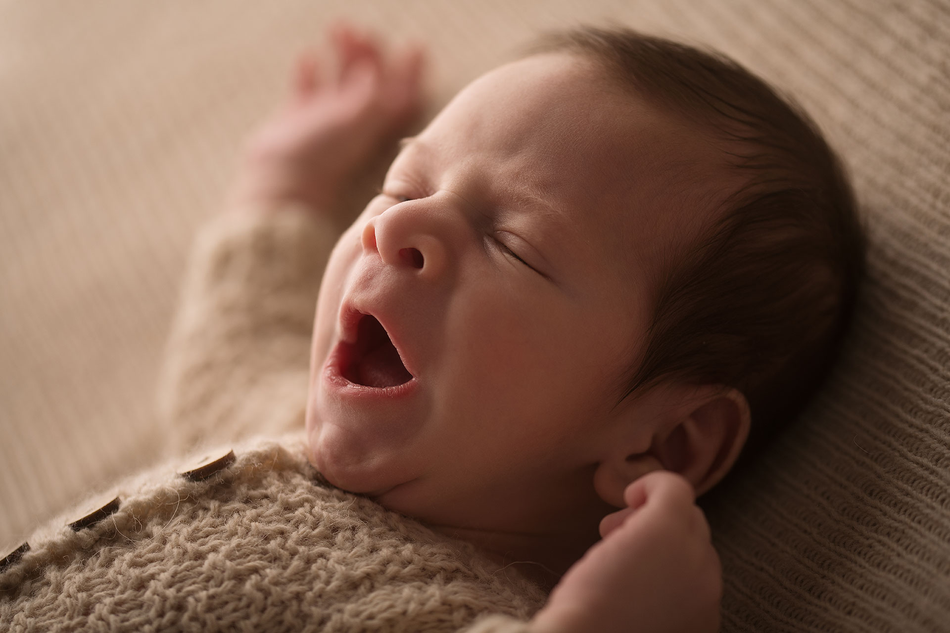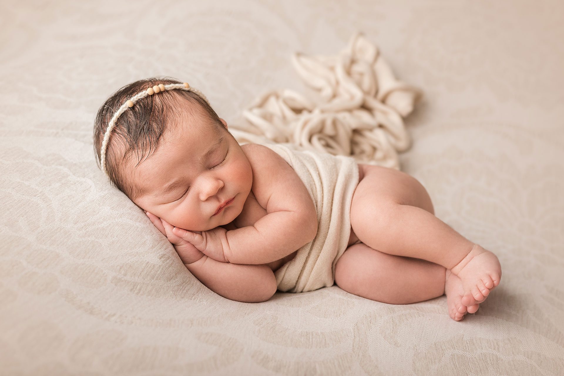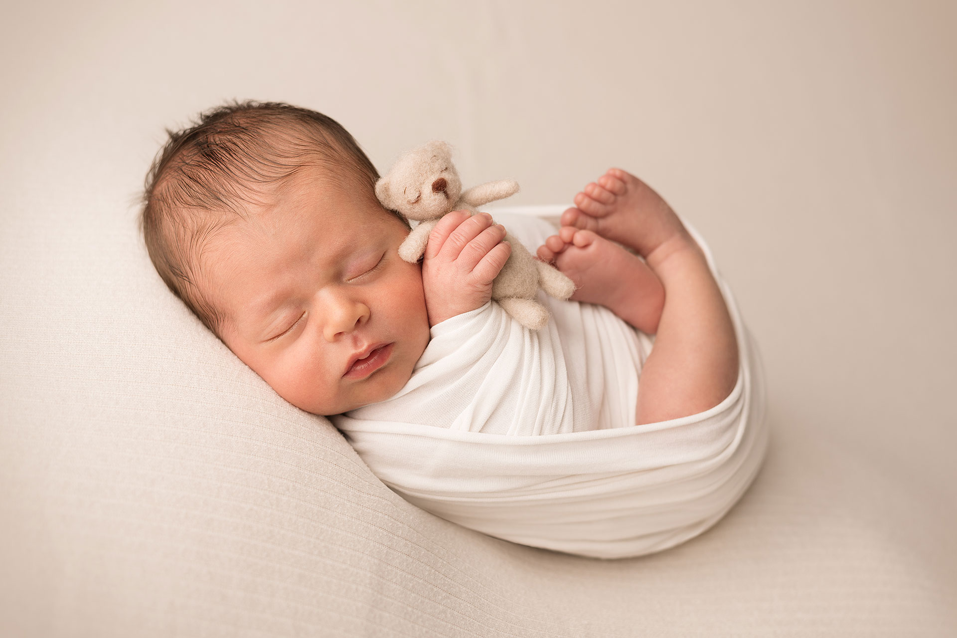 La sessione newborn si effettua tra i 5 e i 15 giorni di vita, e proprio perché è necessario farlo in questi tempi il servizio va prenotato in gravidanza, fissando la data del servizio in base alla data presunta del parto.