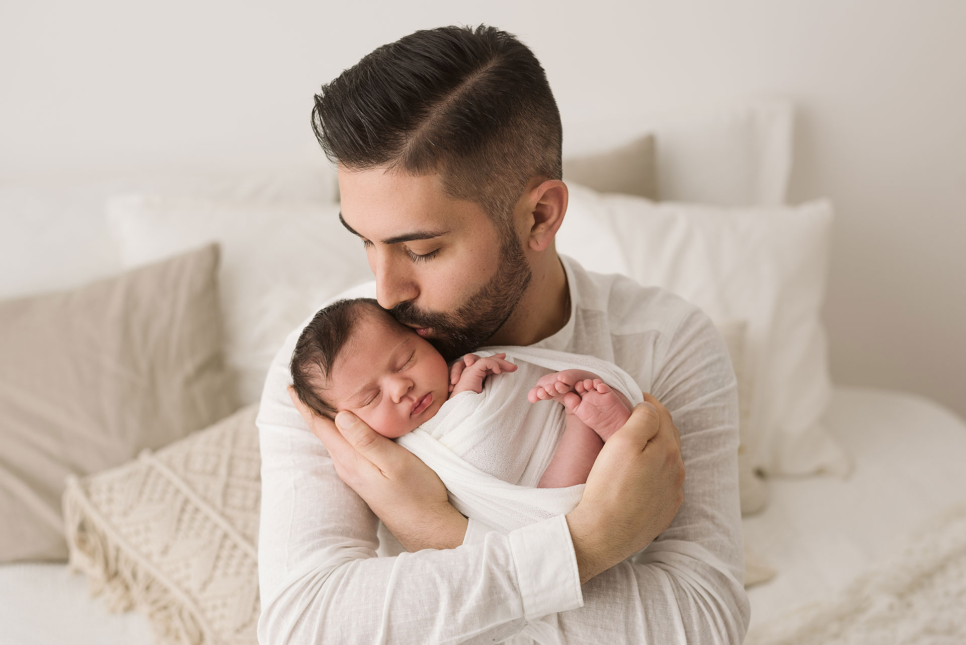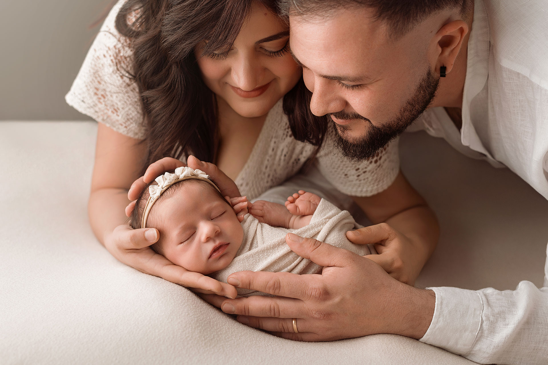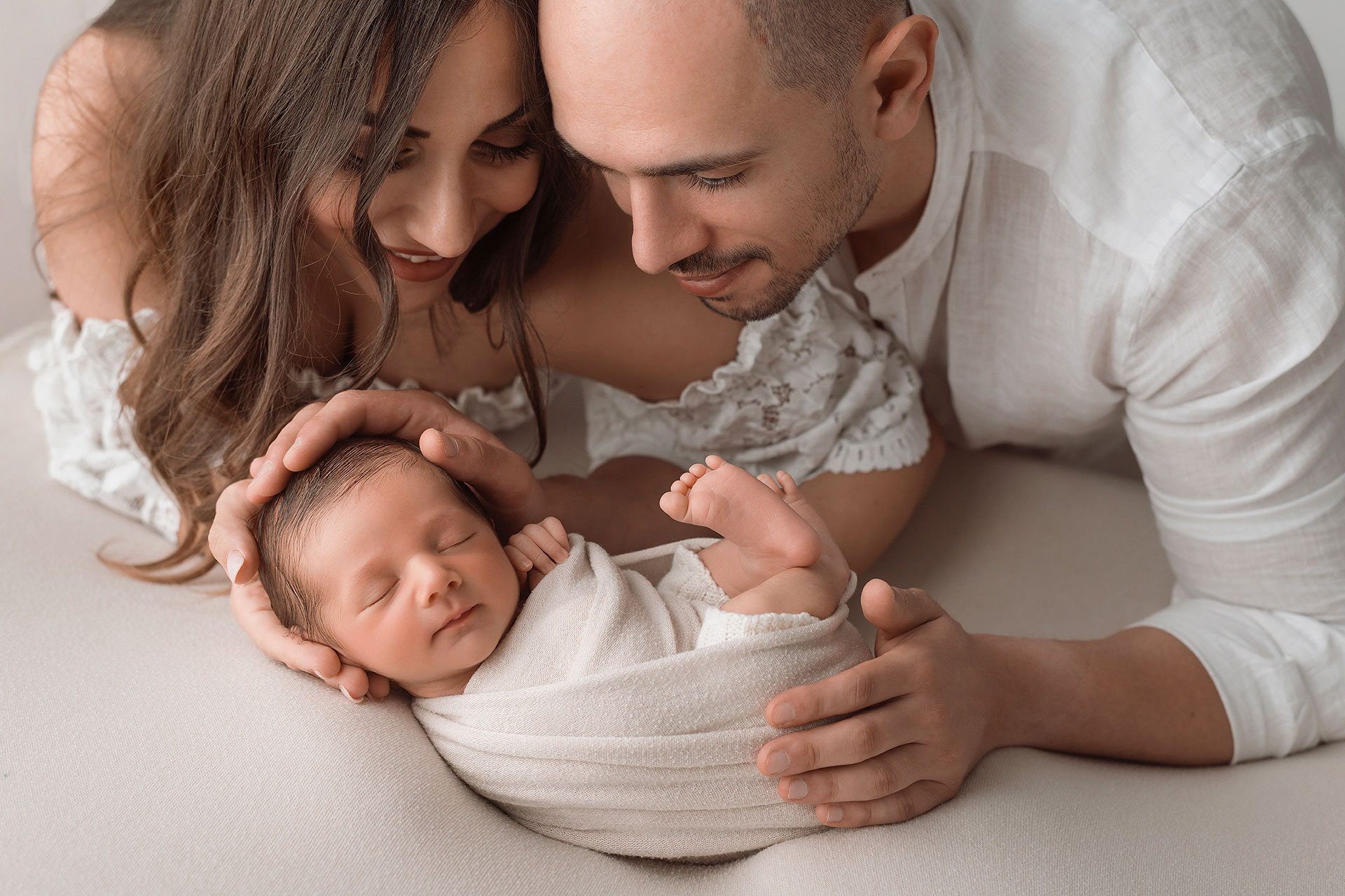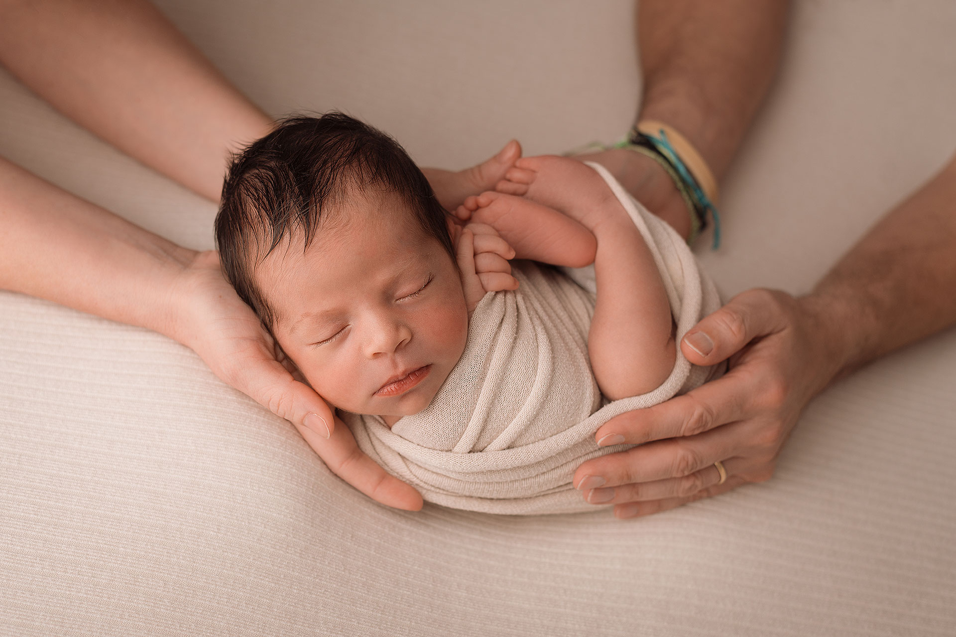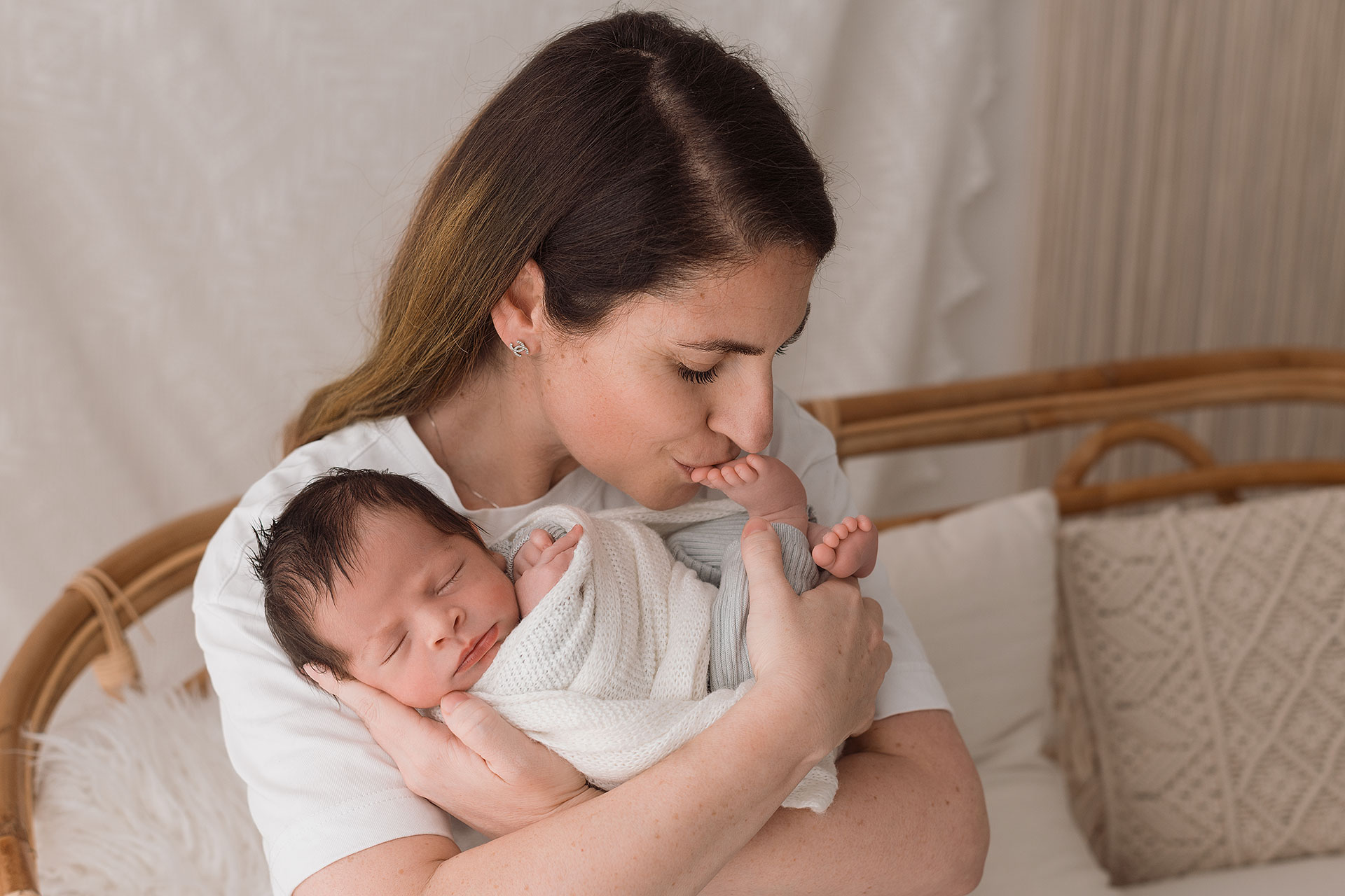 La sessione newborn si effettua tra i 5 e i 15 giorni di vita, e proprio perché è necessario farlo in questi tempi il servizio va prenotato in gravidanza, fissando la data del servizio in base alla data presunta del parto.