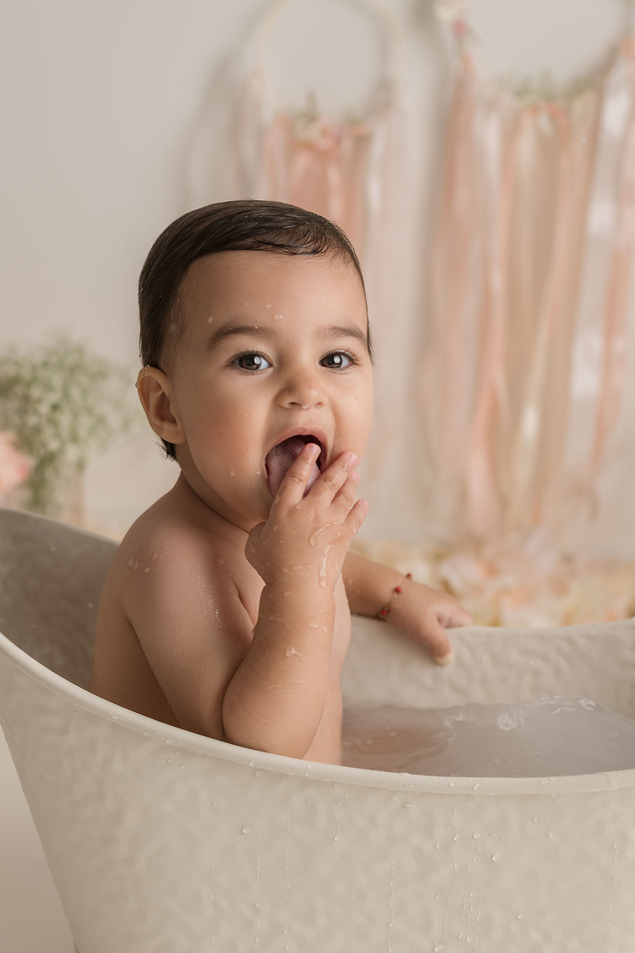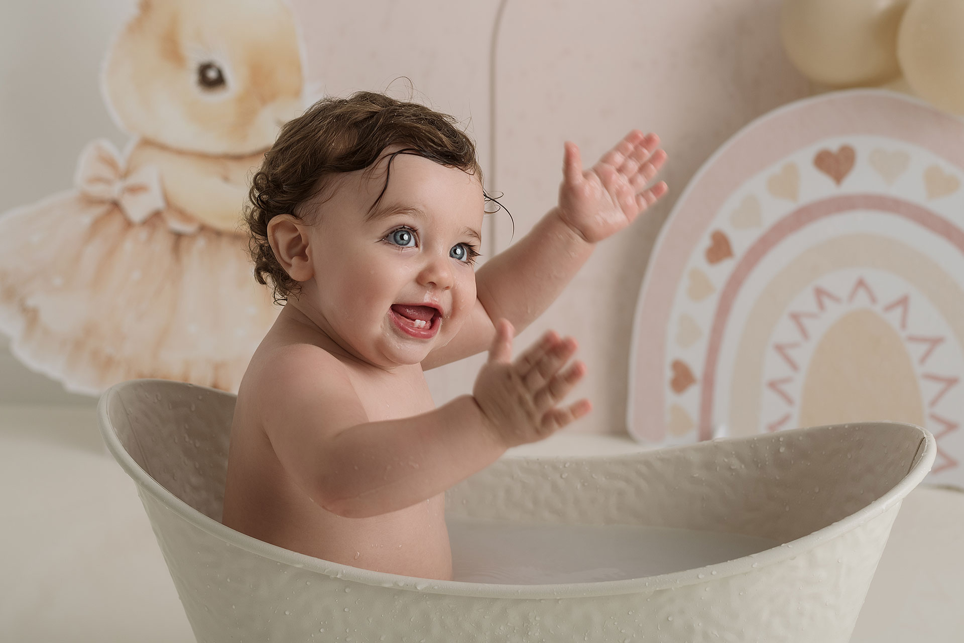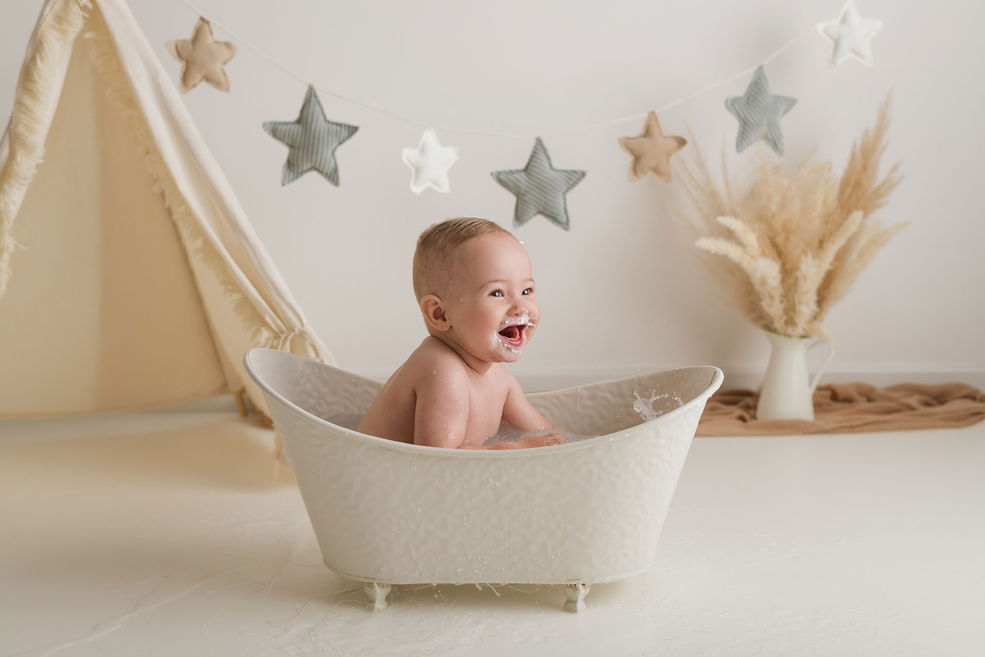 Durante il servizio, il tuo bimbo potrà toccare e pasticciare con la torta, in totale libertà e senza regole: potrà assaggiarla con curiosità, schiacciarla con entusiasmo o semplicemente osservarla con delicatezza. Ogni reazione è diversa, autentica, e bellissima da fotografare. E per concludere in bellezza, non mancherà un momento dedicato al bagnetto finale, divertente e perfetto per chiudere il servizio con tanti sorrisi e spruzzi d’acqua ovunque.